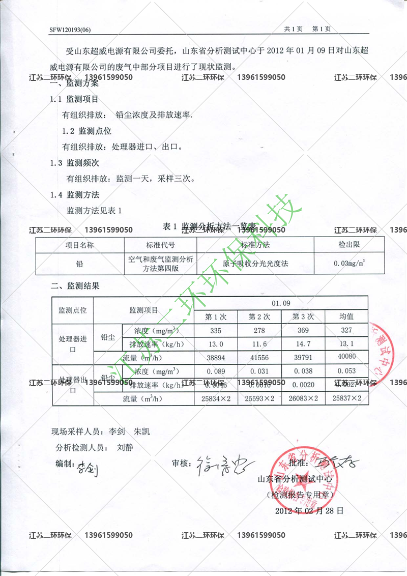 3、兩臺除塵器的年排放總量是180公斤/年